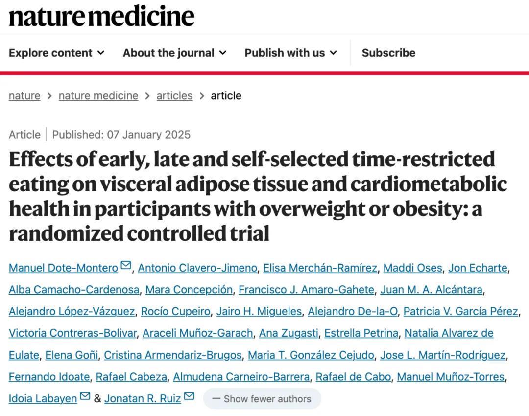 结果发现,三组受试者的体重减轻显著超过常规护理组,但其中早限时进食组受试者的皮下脂肪减少程度更大,且空腹血糖水平和夜间血糖水平较其他组也得到了改善。